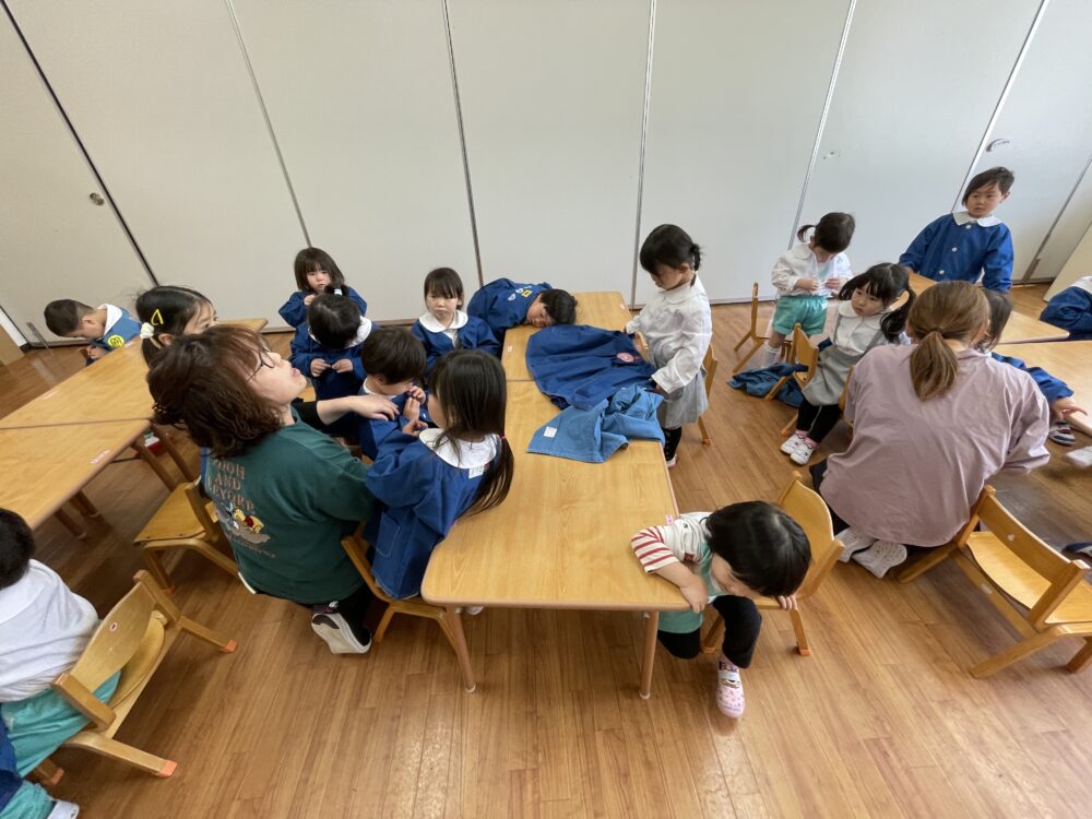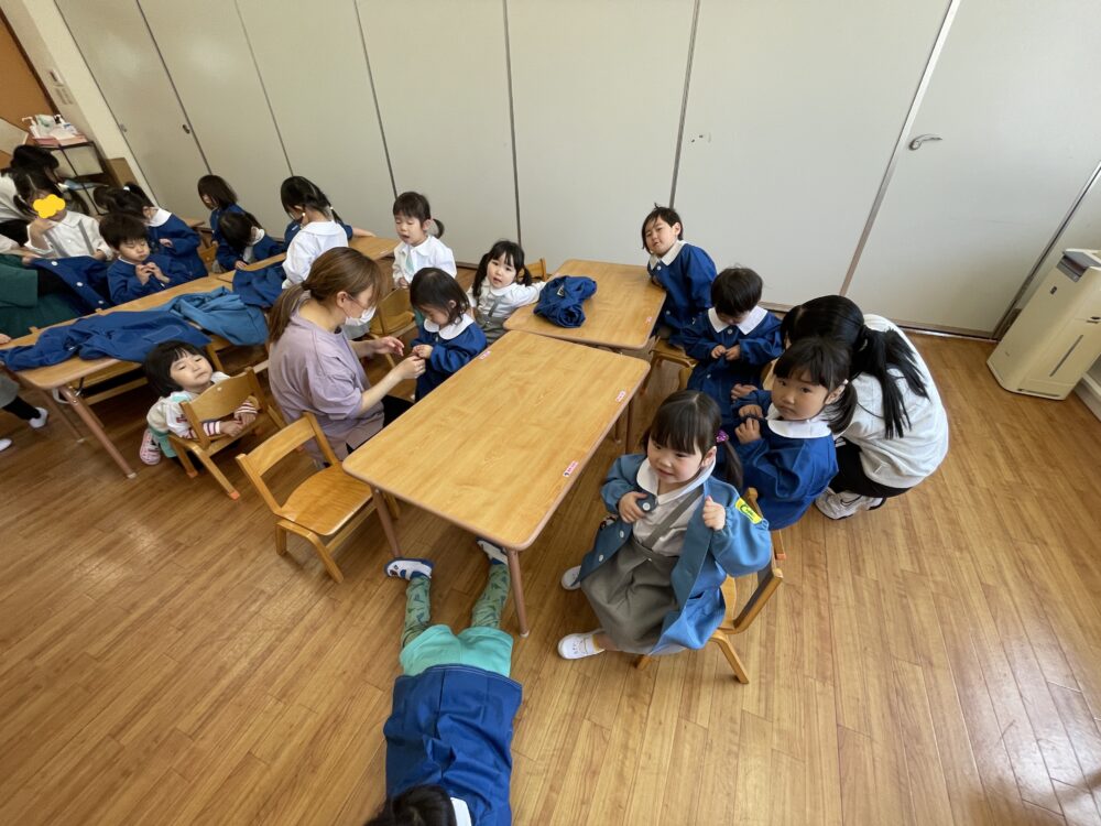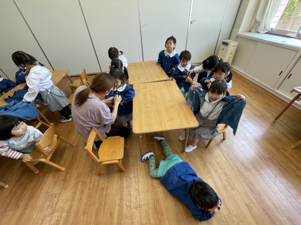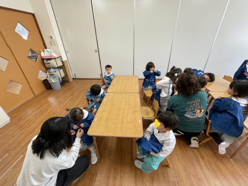 いちご組さんは、活動の最後にボタンのしめ方,はずし方の練習をしました。お着替えも大切な生活習慣作りの一つですね。毎日の積み重ねが大切ですね。