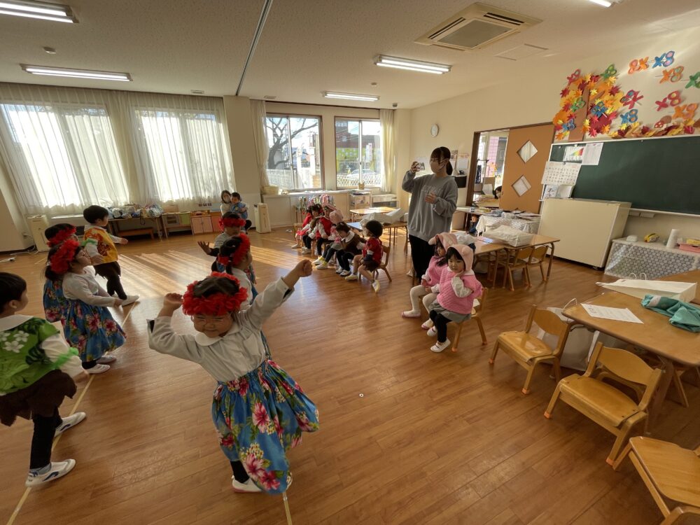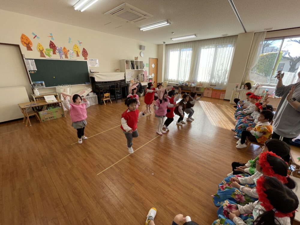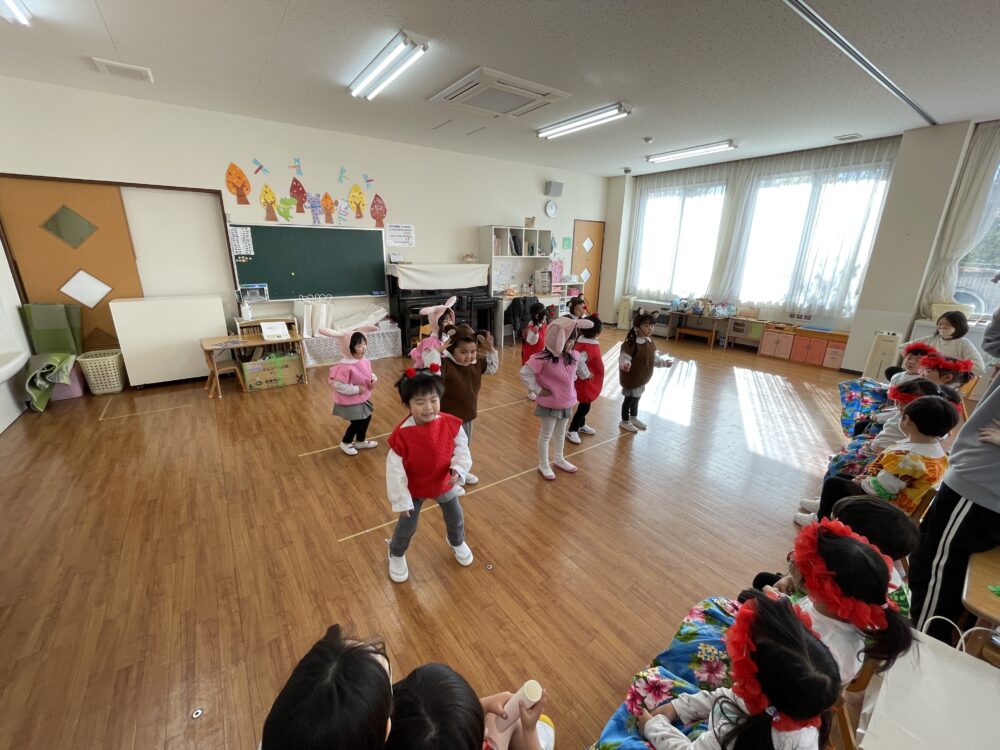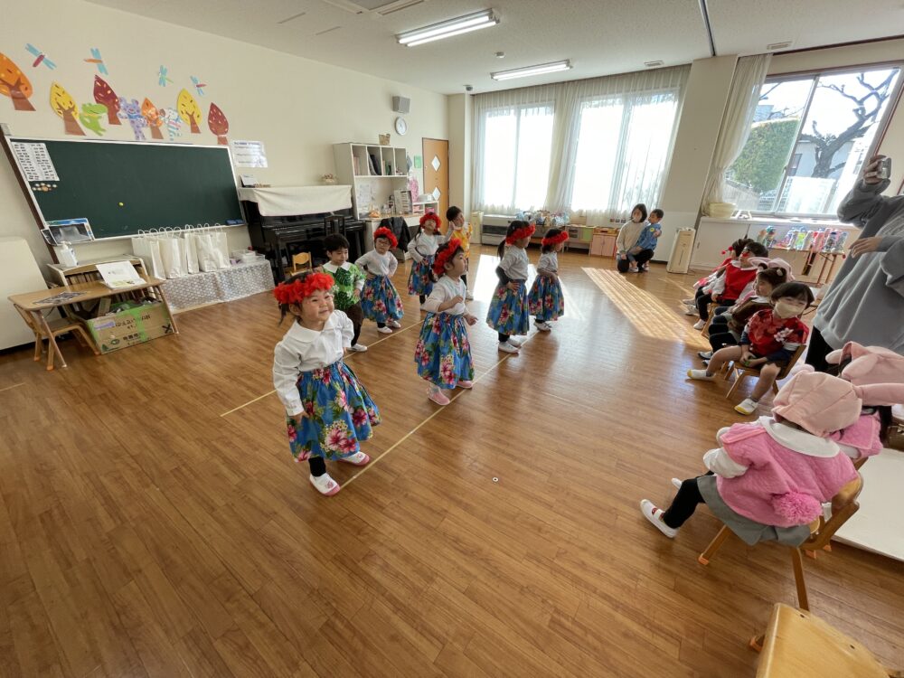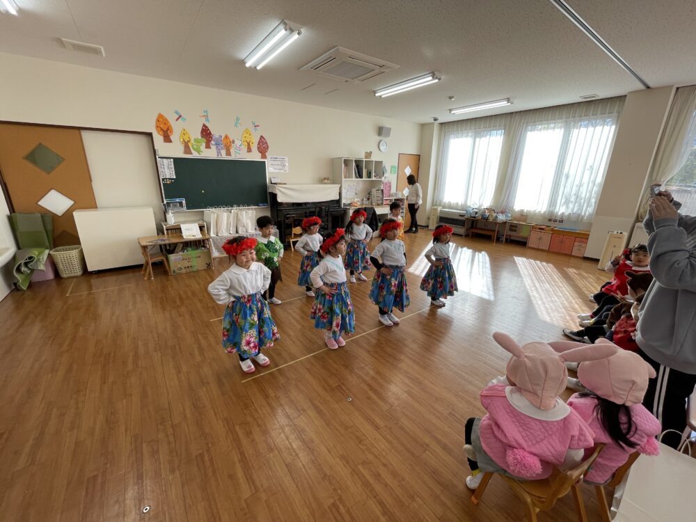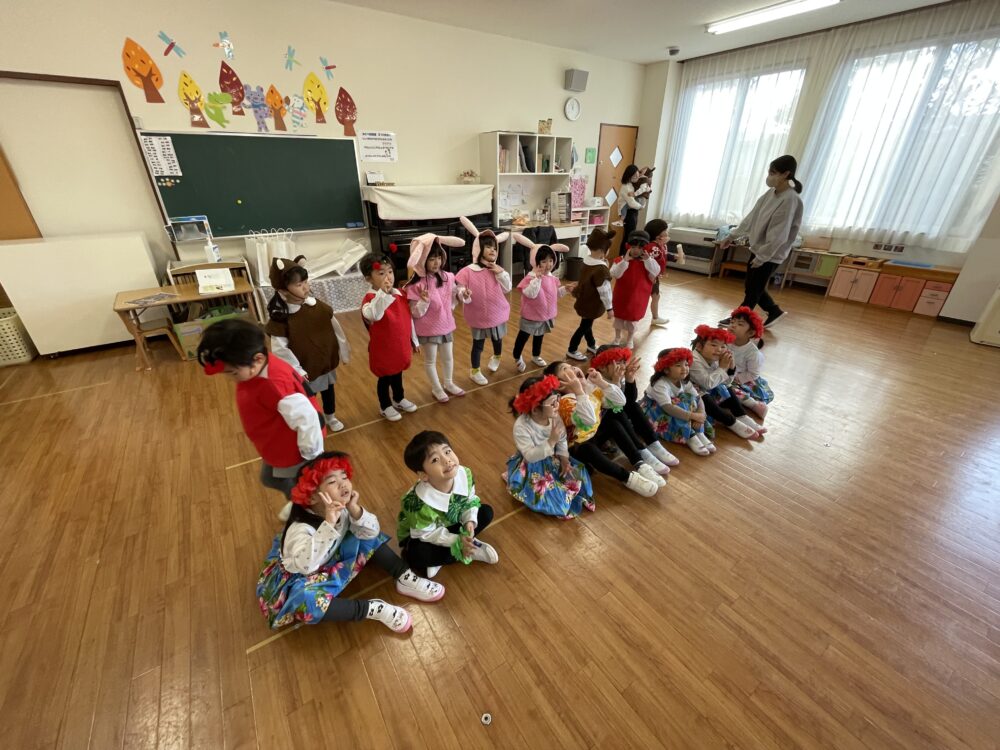 いちご組さんは、発表会で披露したダンスを衣装を着て、もう一度踊りました。みんな笑顔でとてもじょうずでした。最後に記念撮影をしました。