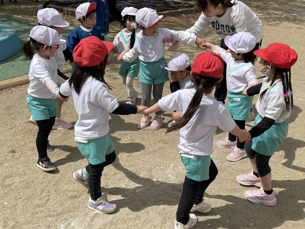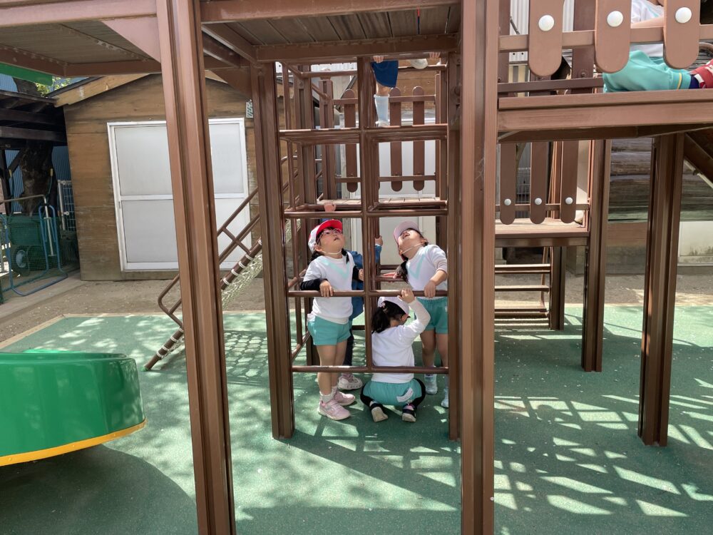 ゆり組さんは、外で元気に遊びました。お友達と楽しく遊びました。
