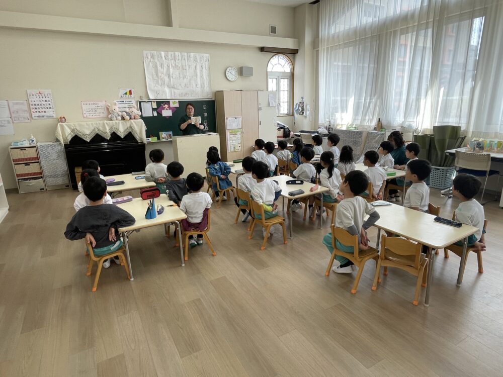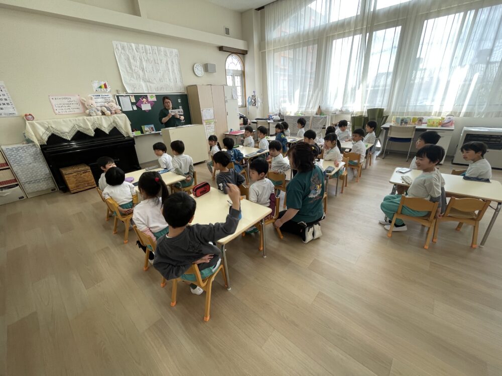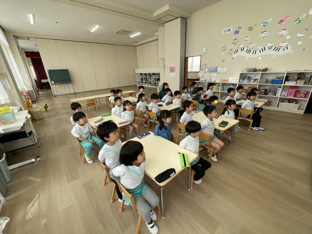 さくら組さんは、フラッシュカードで言葉のお勉強をしました。姿勢も良くてすばらしいです。