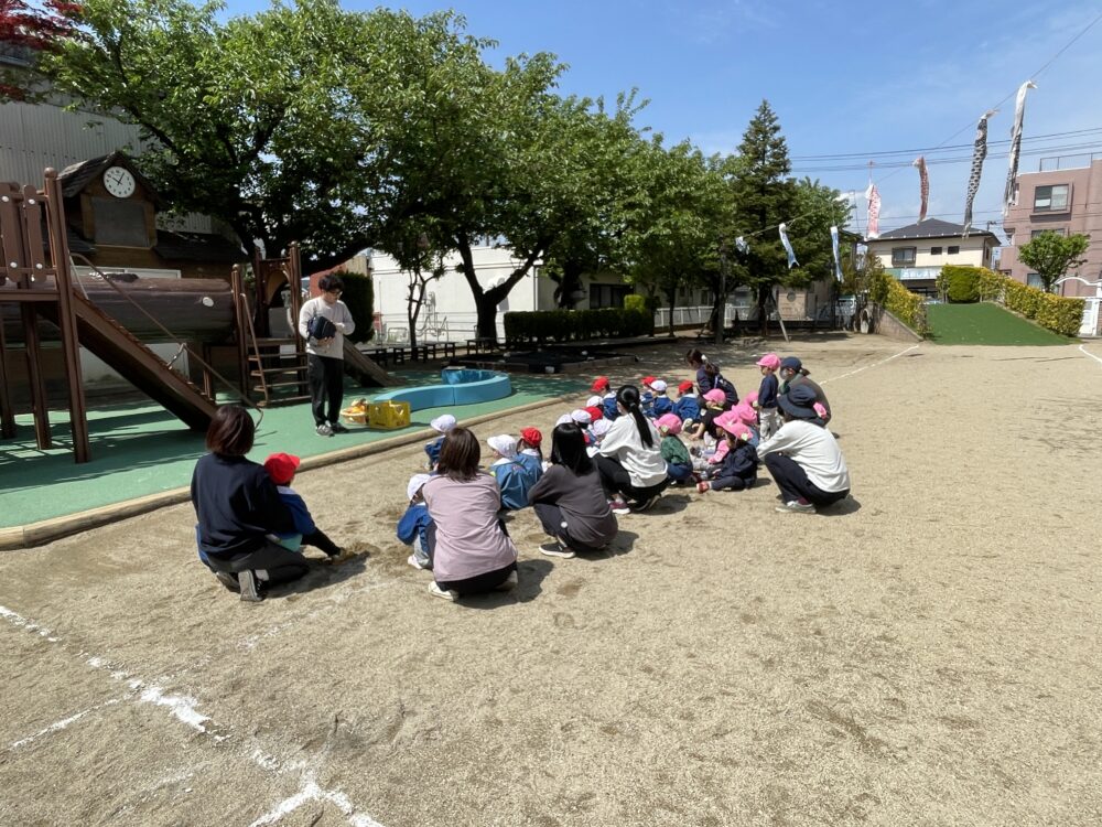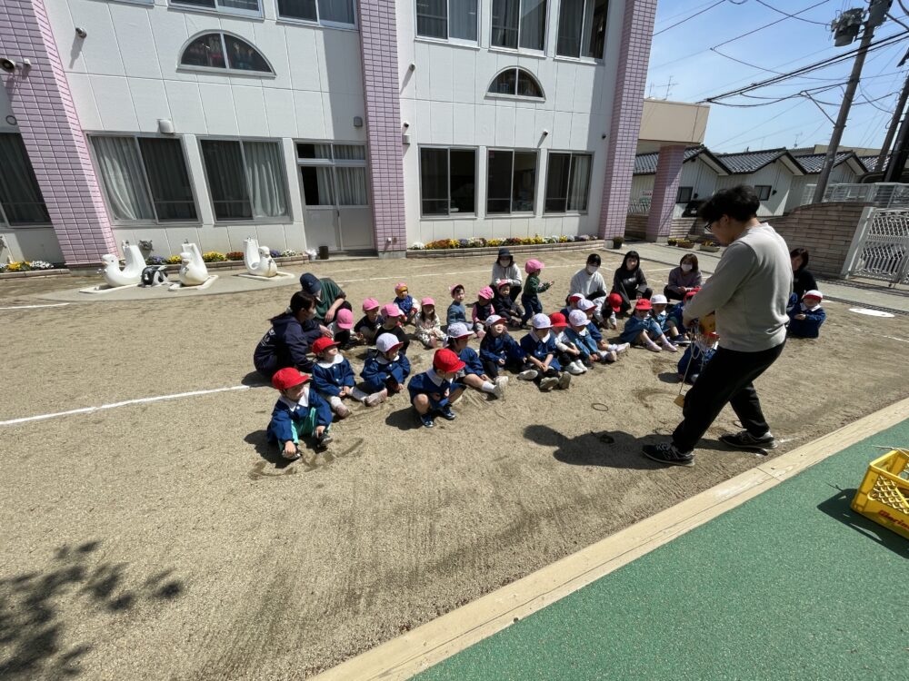 今日は安全指導の日です。遊具の使い方、登園の仕方など、クラスごとにお話を聞きました。
