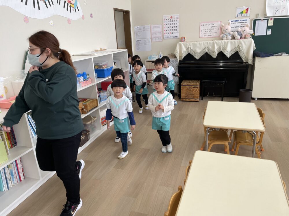 さくら組さんは、みんなのお世話をします。各クラスの様子を見に行きました。1年間、やさしくお世話をしてくださいね。