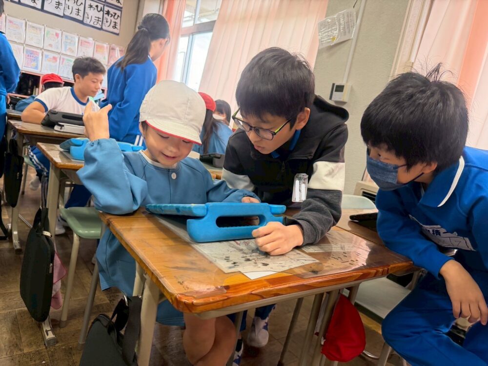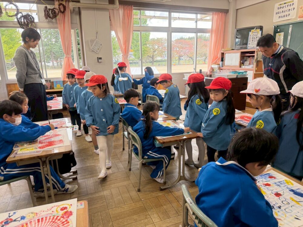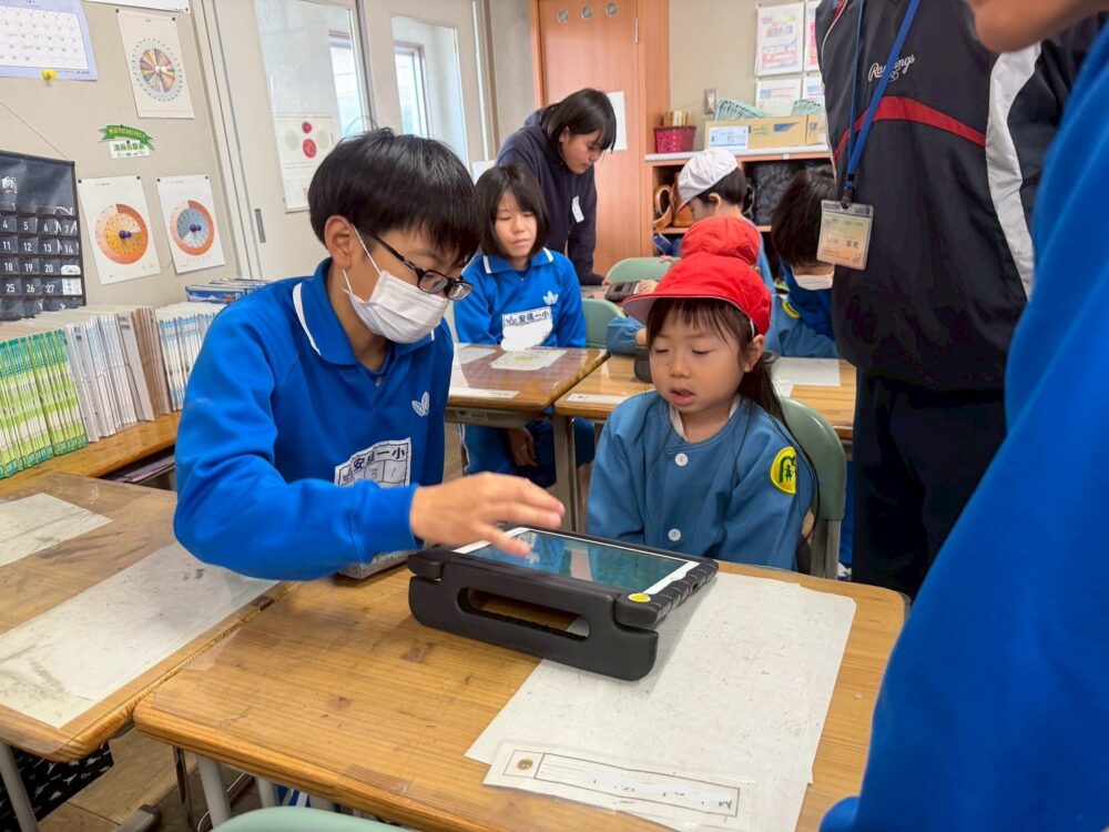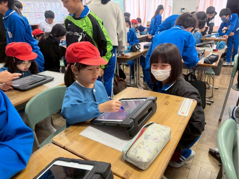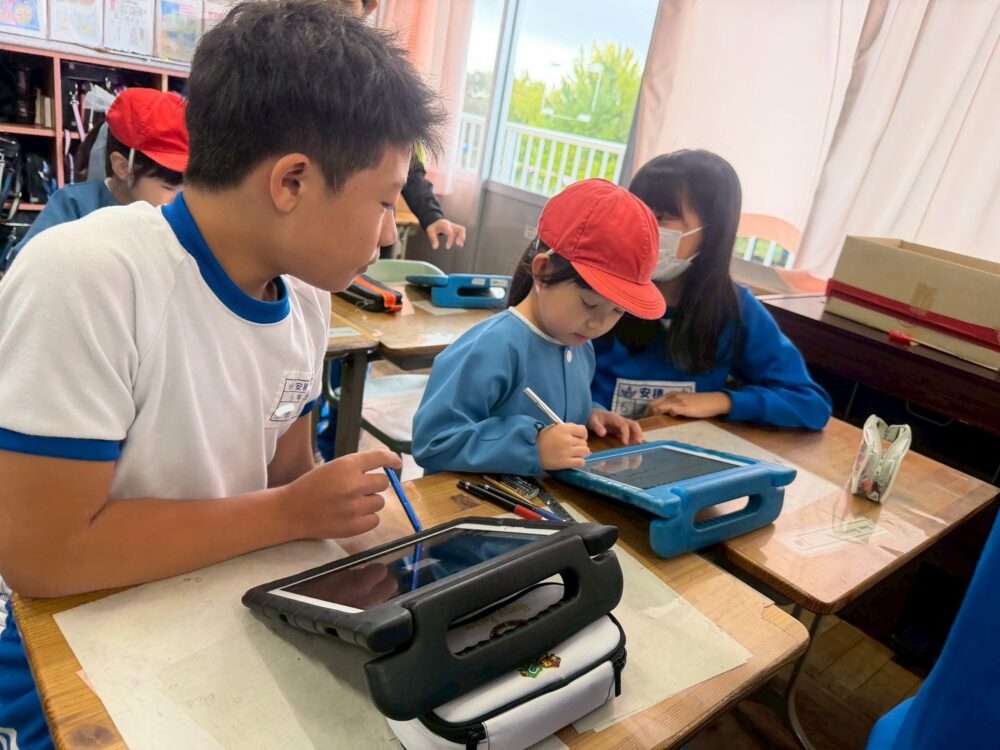 さくら組さんは、先週の安積第三小学校に引き続き安積第一小学校に行ってきました。校長先生自ら案内をしてくださいました。一年生の授業の様子を参観してから、6年生のお兄さん、お姉さんにタブレットの使い方を教わり、お絵かきをしました。帰りには、運よく運動会のリレーをみることができました。