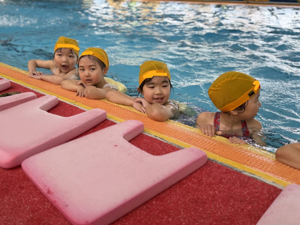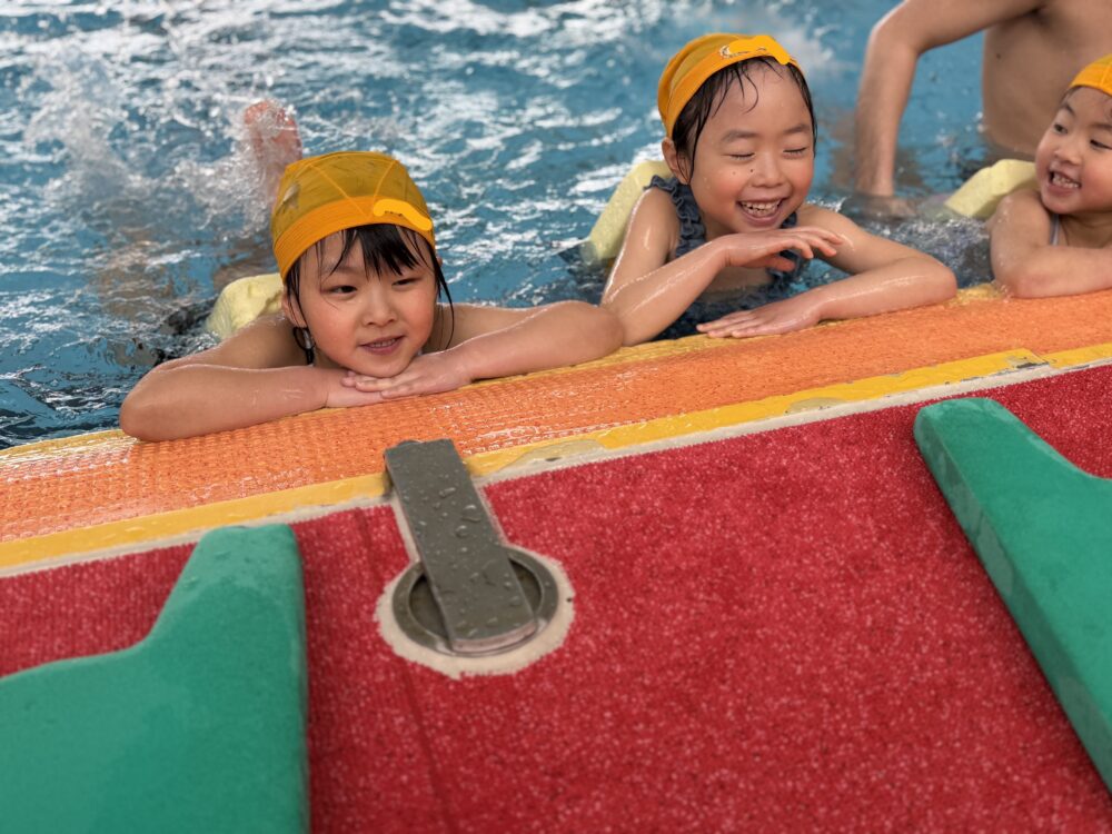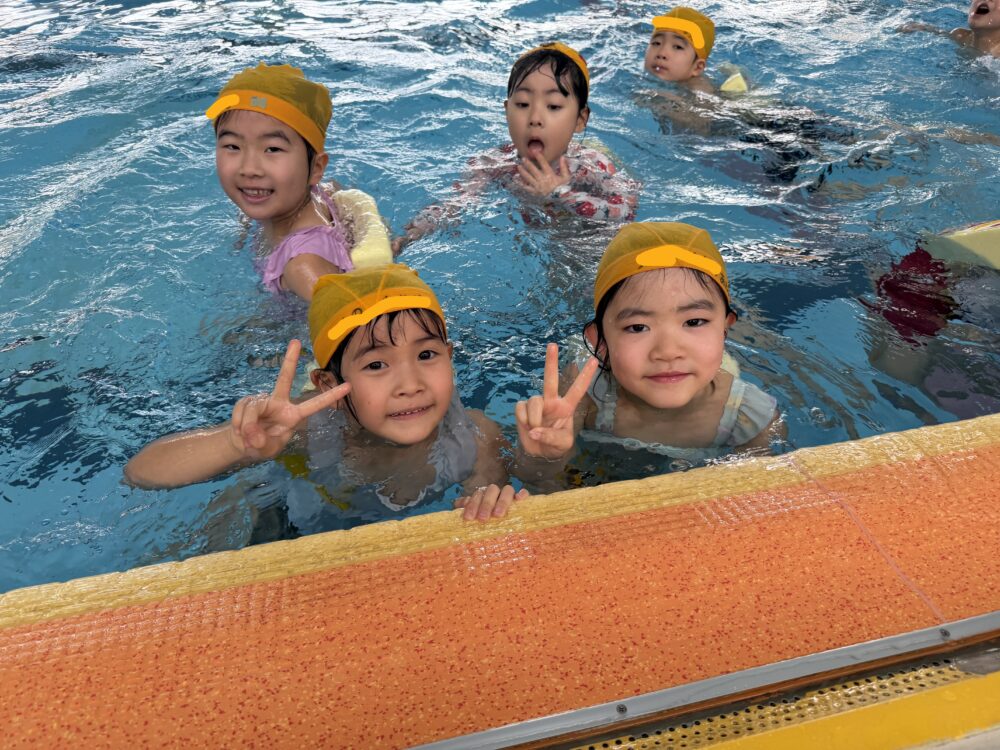 さくら組さんは、水泳教室でした。最後の水泳教室なので、記念写真をとりました。みんな素敵な笑顔で、見ているだけで幸せな気持ちになります。さくら組さん、最高の笑顔を届けてくれてありがとう。