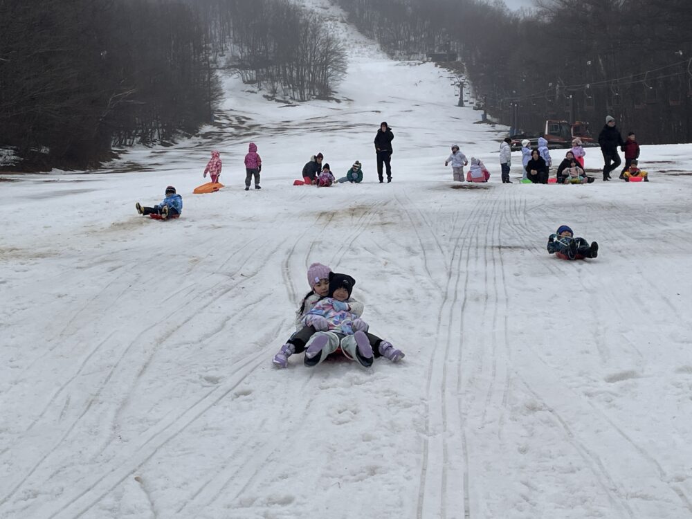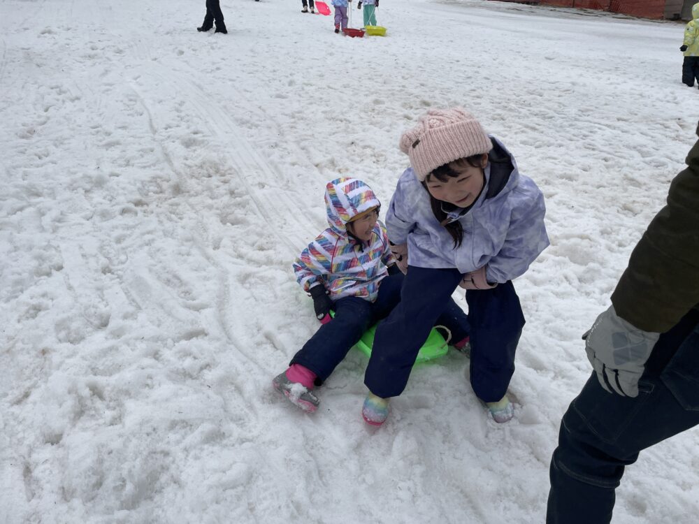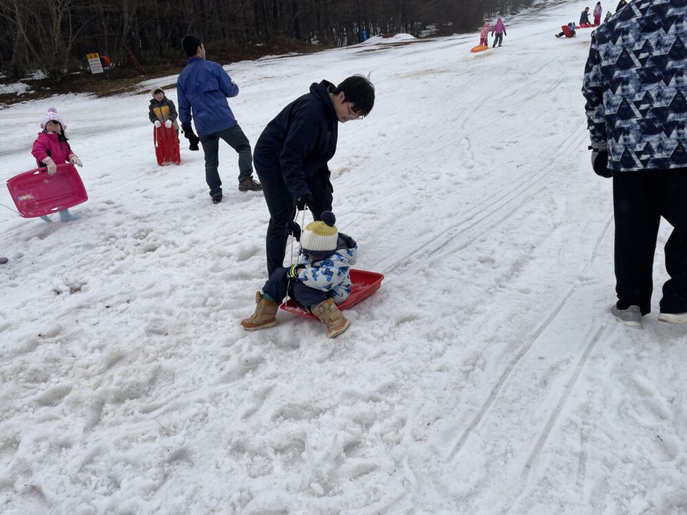 金曜日、さくら組さんは、塩沢スキー場でそり遊びをしました。広いゲレンデで思う存分そり遊びや雪合戦をしました。お昼はカレーライスを食べました。みんなの笑顔がはじけました。コスモの先生、SYDの若いお兄さん、お姉さん6名の方々がサポートをしてくださり、安心でした。