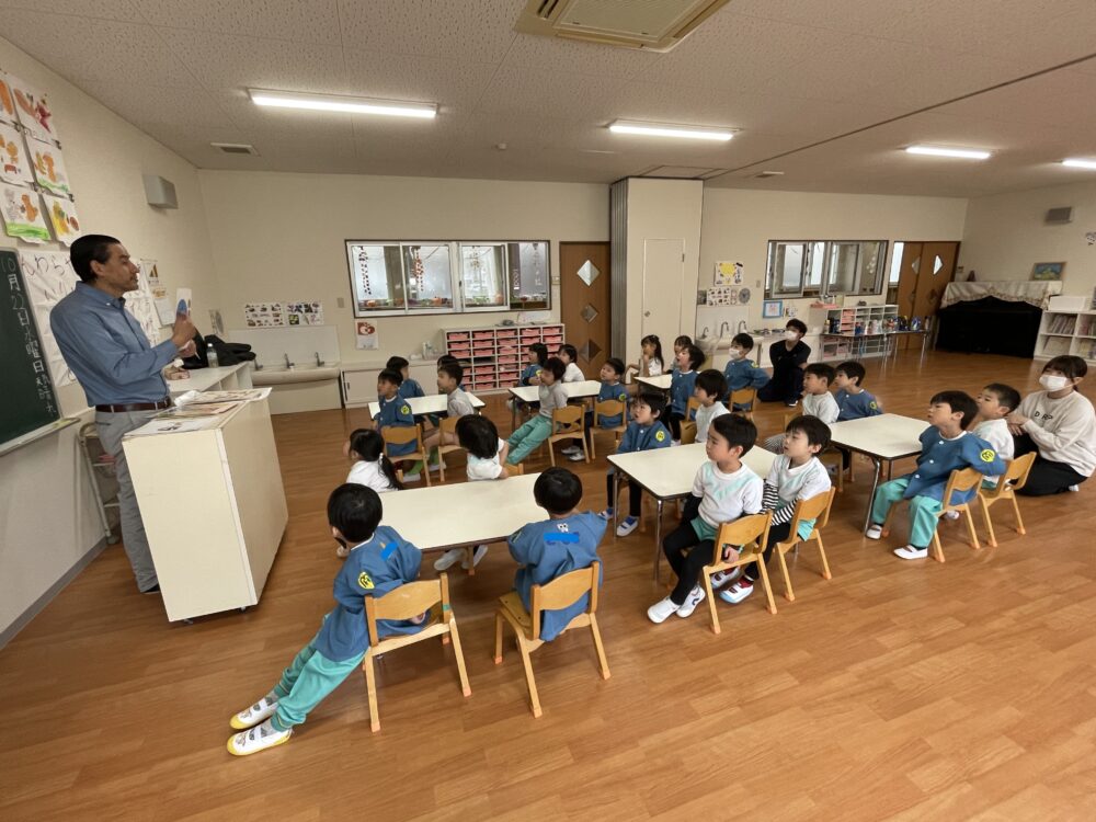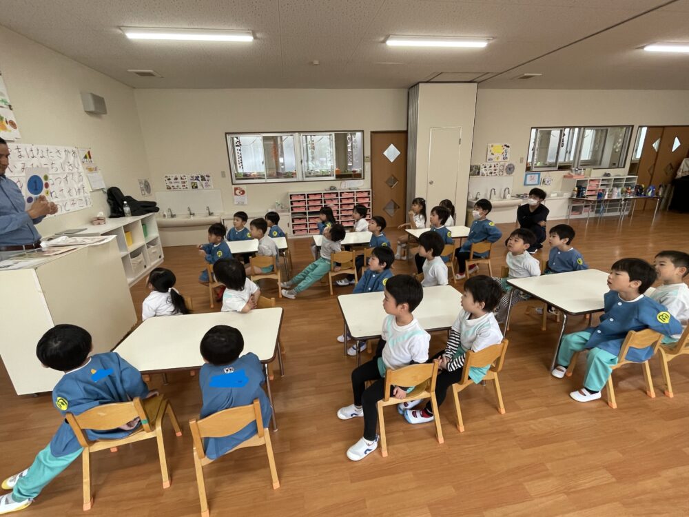 ゆり組さんは、英語教室でした。集中してがんばっていました。
