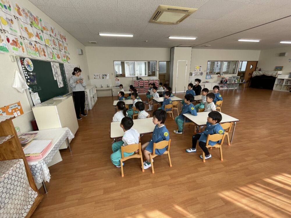 ゆり組さんは、読み聞かせをしました。物語に出てくる漢字に触れさせる読み聞かせです。
