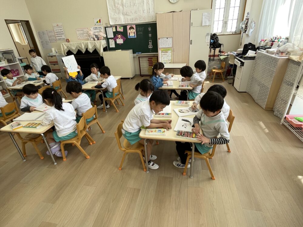 さくら組さんは、自由に絵を描いていました。