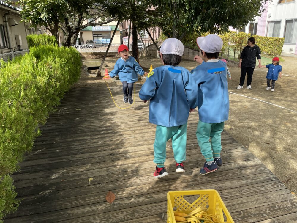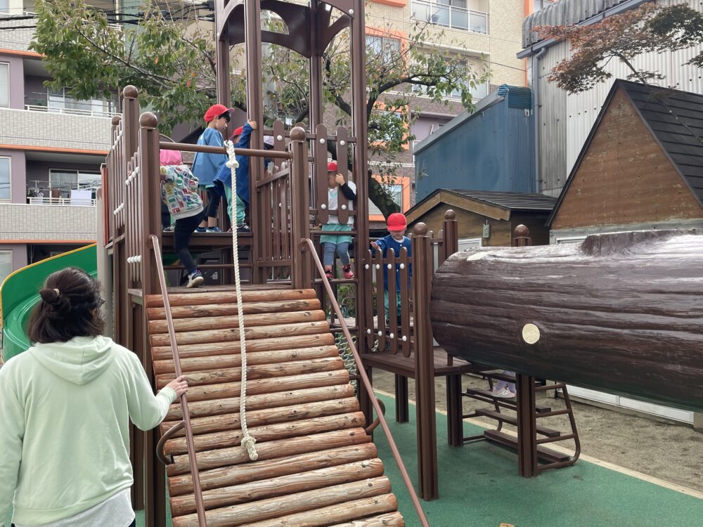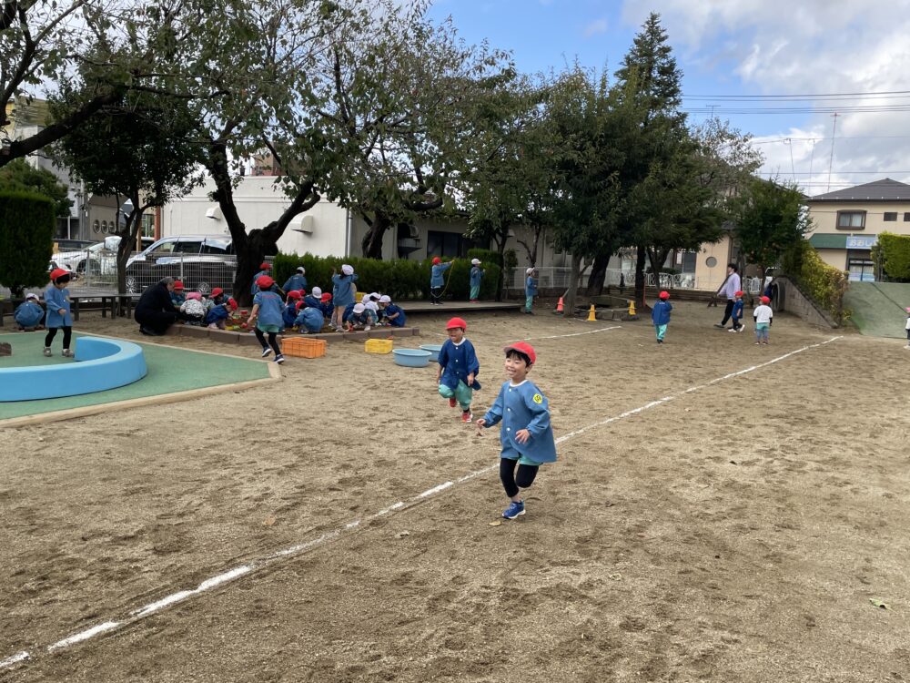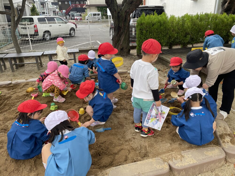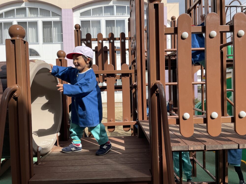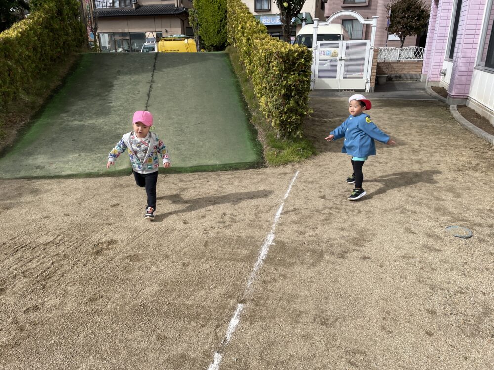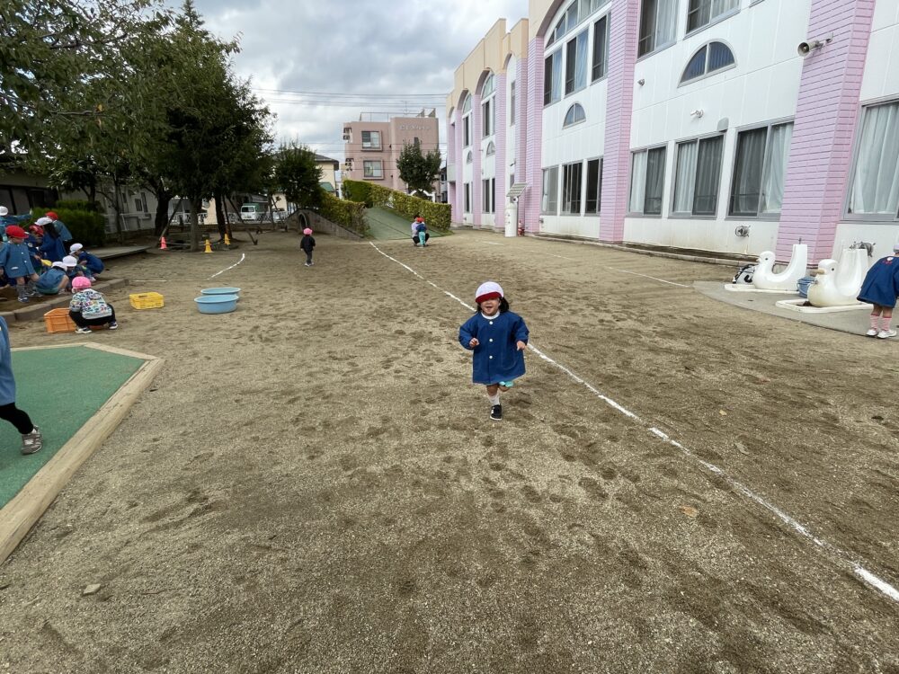 きらら・ひよこ組さん、いちご組さん、ゆり組さんは、外でたっぷり遊びました。遊具、砂遊び、かけっこなど、楽しく遊びました。満足した顔でお部屋に戻ってきました。