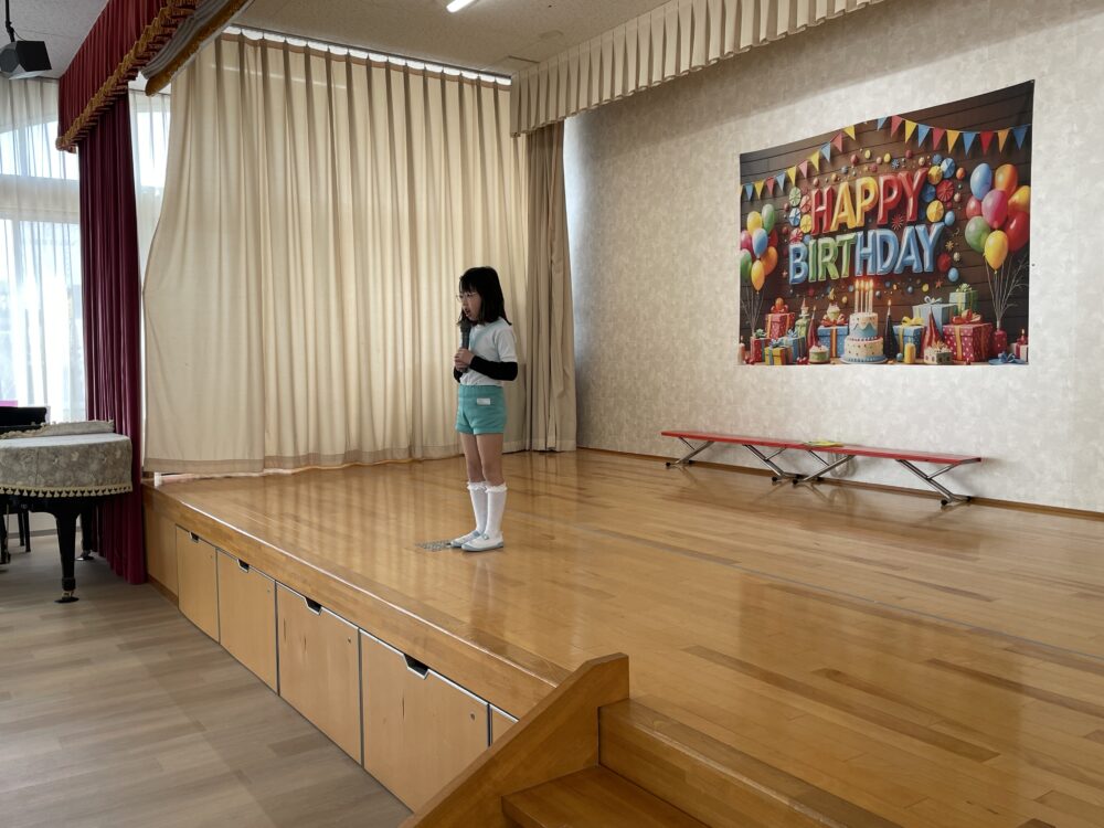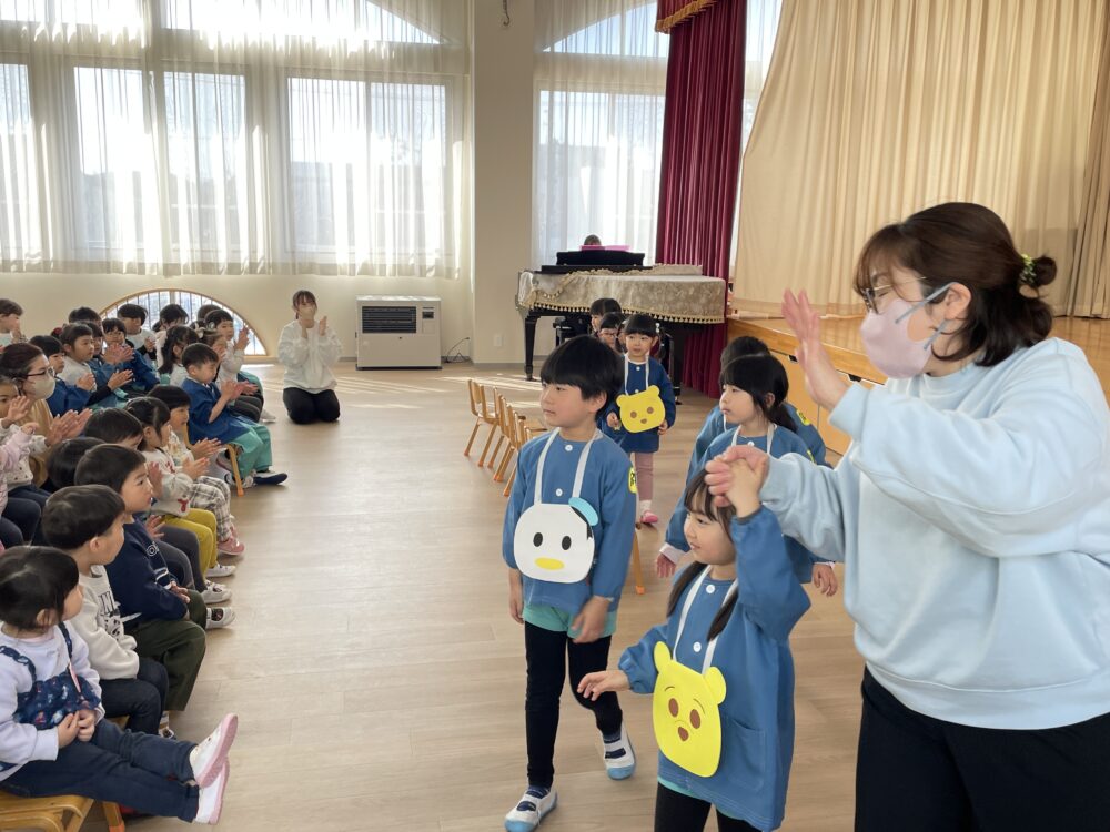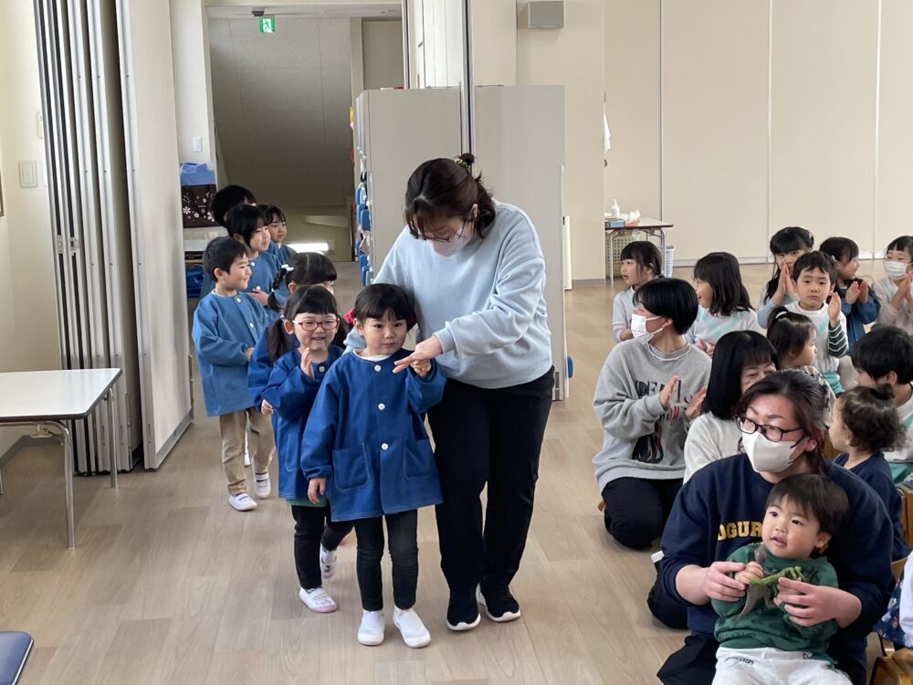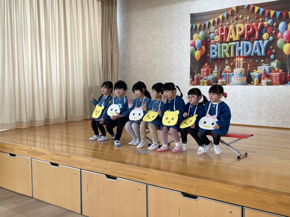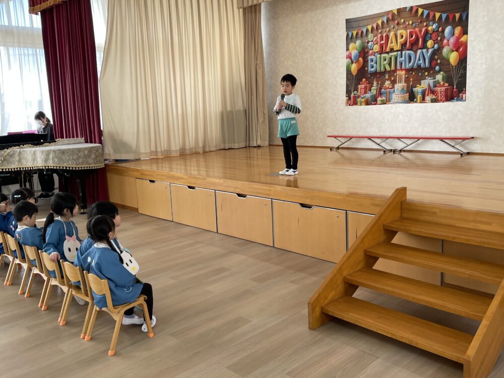 先週の金曜日に、3月生まれのお友達のお誕生会を行いました。今年度最後のお誕生会でした。3月生まれのお友達に、みんなでおめでとうの気持ちを伝えました。みんなとてもすてきな笑顔を見せてくれました。