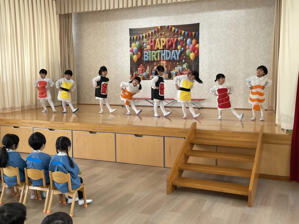 ゆり組さんが、お寿司のダンスで盛り上げてくれました。さくら組さんからバトンタッチされたゆり組さんを見ていて、頼もしく感じました。